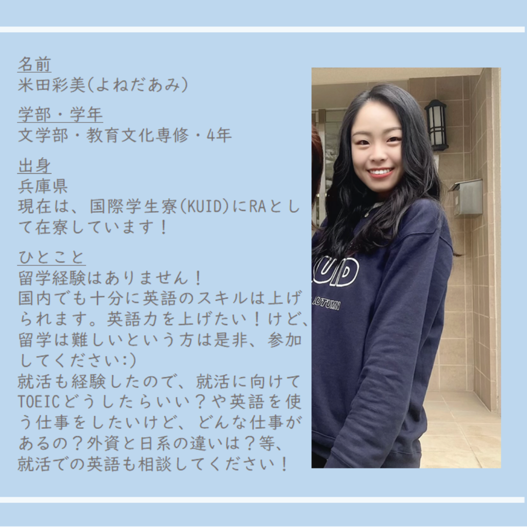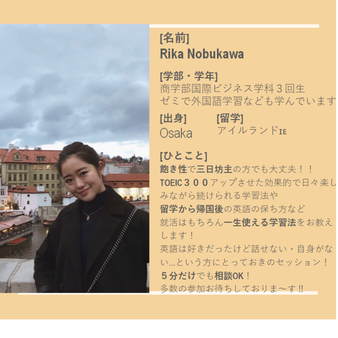 英語が得意な先輩と気軽にお話し、先輩の経験談を聞いてみたい!という方でも参加OKです!★以下のような人に特におススメ!