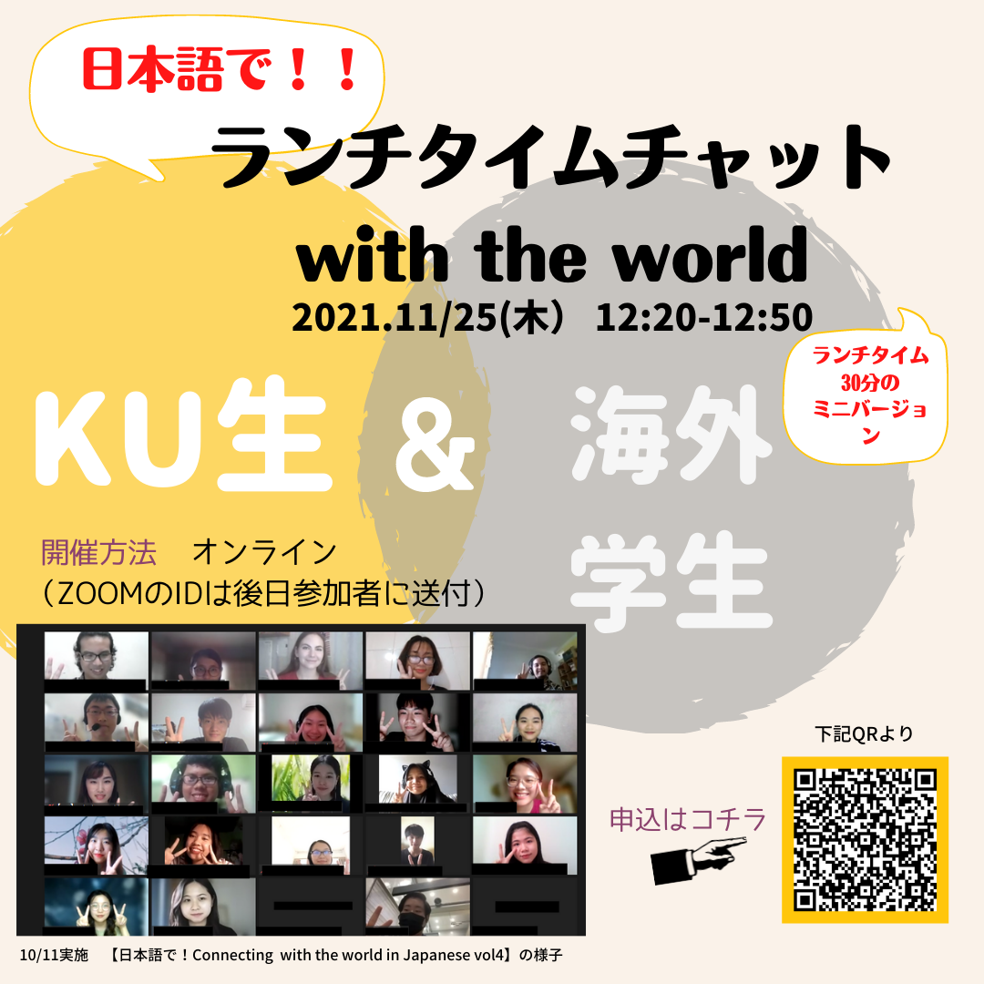 人気イベントConnecting with the worldの日本語&ミニバーションを下記日程で開催!参加しやすいランチタイム、気軽に海外の学生と日本語でおしゃべりしましょう!