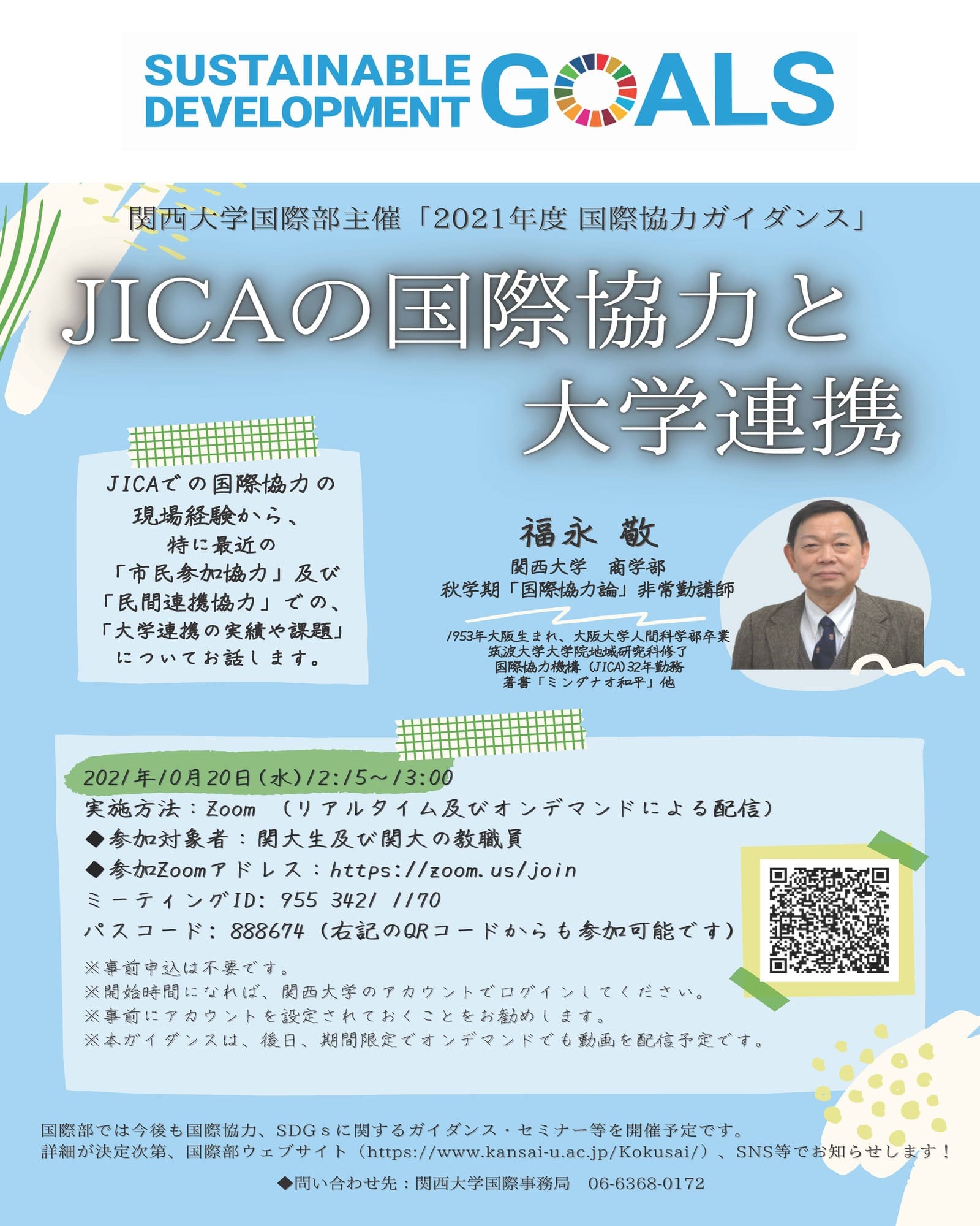 関西大学 商学部 秋学期 「国際協力論」 非常勤講師 福永 敬