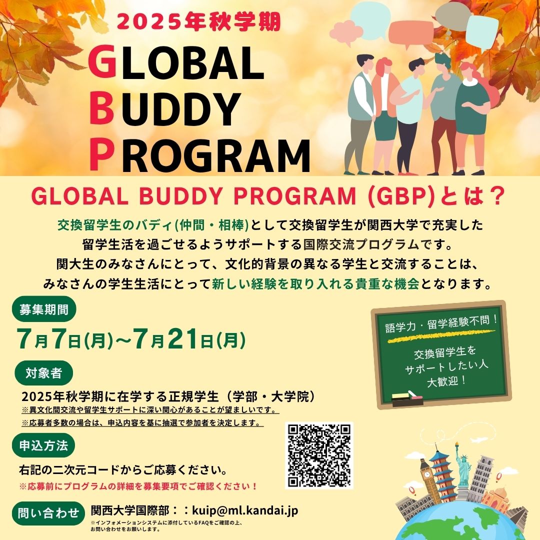 ~2025年度秋学期Global Buddy Program(GBP)Buddy募集~