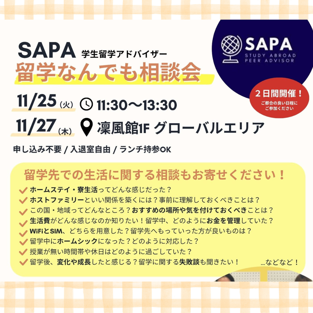 当日相談できるSAPAメンバーについては添付のポスターをご確認ください♪
