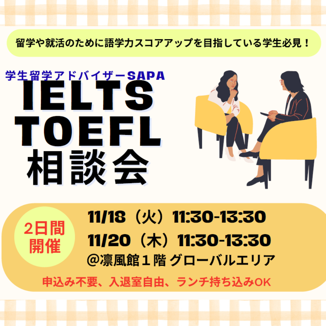 【学生留学アドバイザーSAPAイベント】IELTS・TOEFL相談会