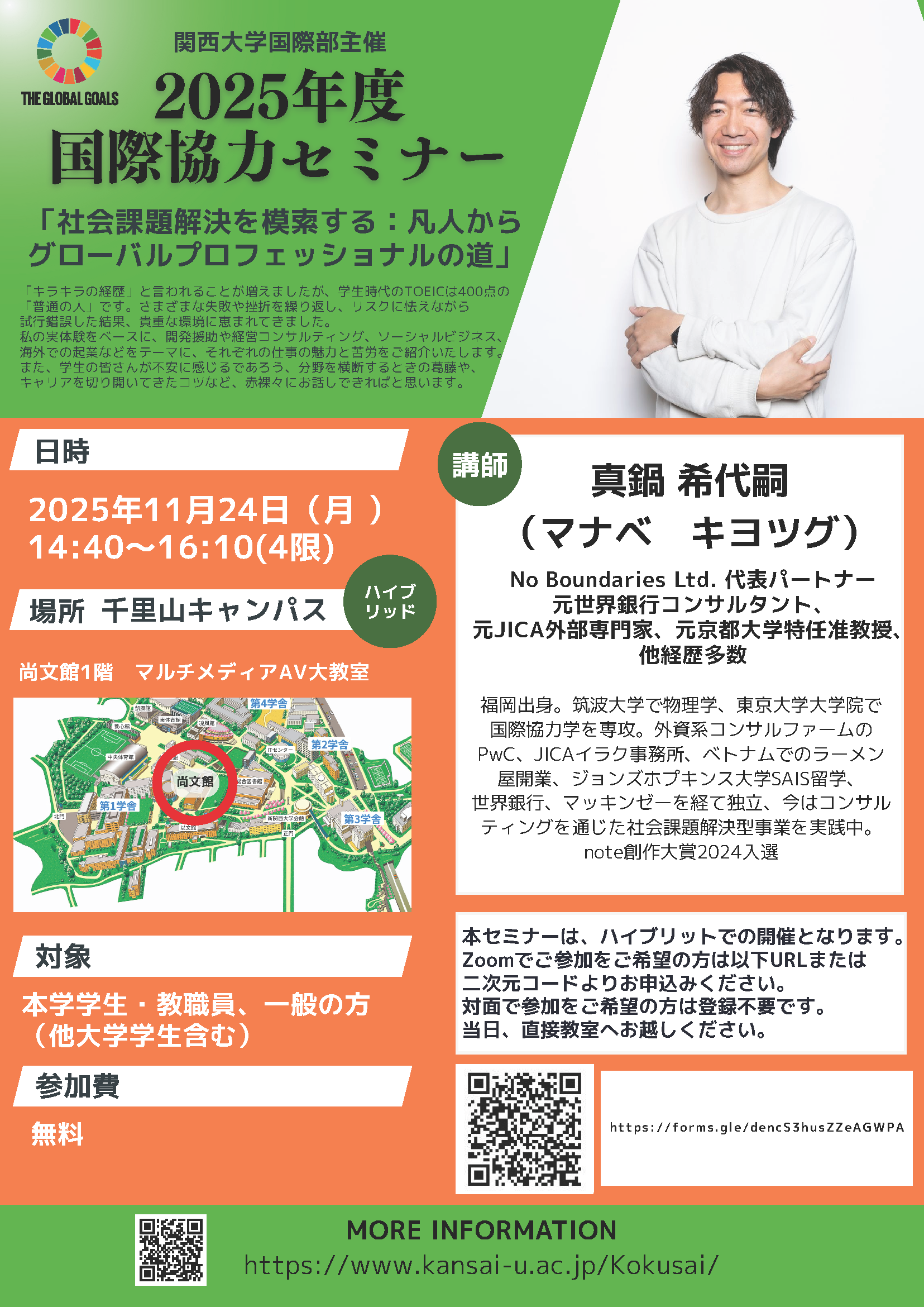 2025年度 秋学期国際協力セミナー「社会課題解決を模索する:凡人からグローバルプロフェッショナルの道」を開催します!