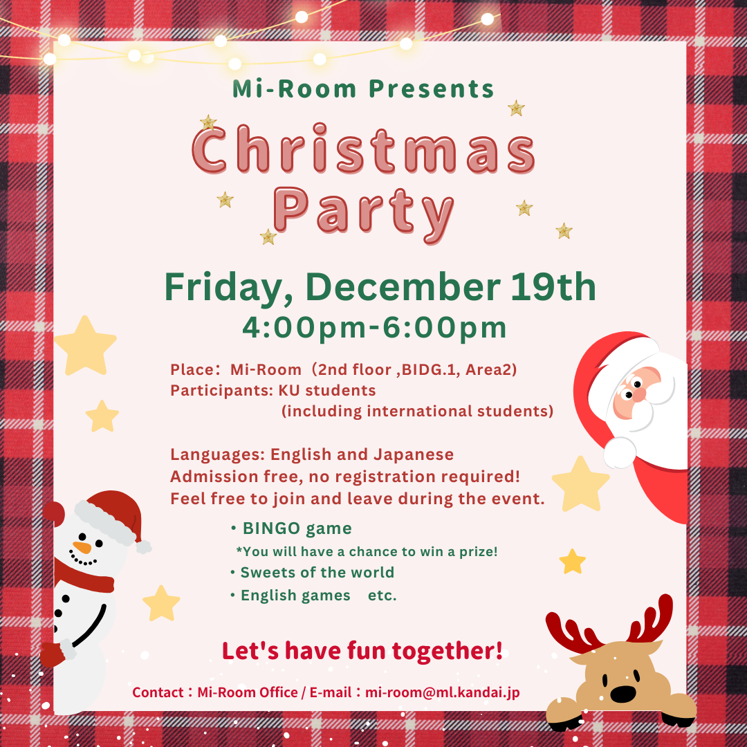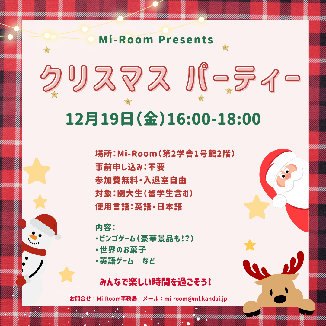 12月19日(金)にMi-Roomで「クリスマスパーティー」を行います!!