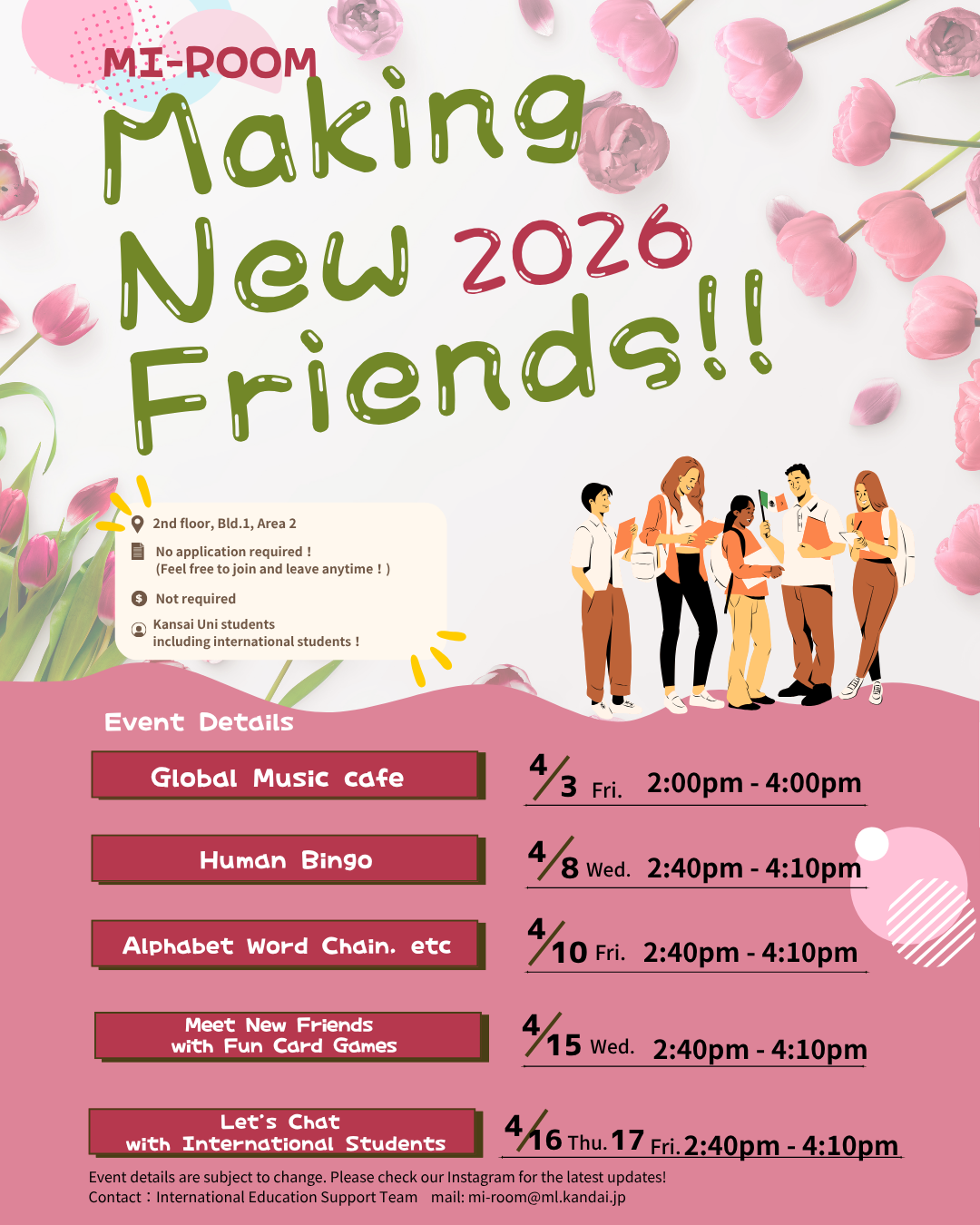 ANY Kansai-Univ student, whether you are a new student or not, is welcome.