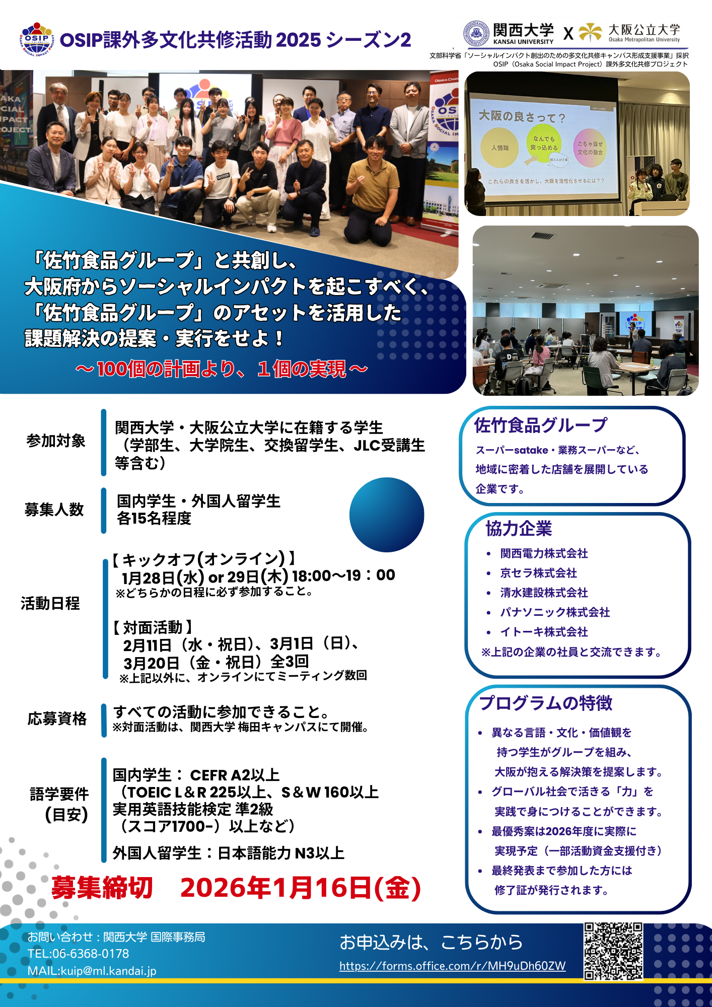 ●参加対象:関西大学・大阪公立大学に在籍する、国内学生・留学生