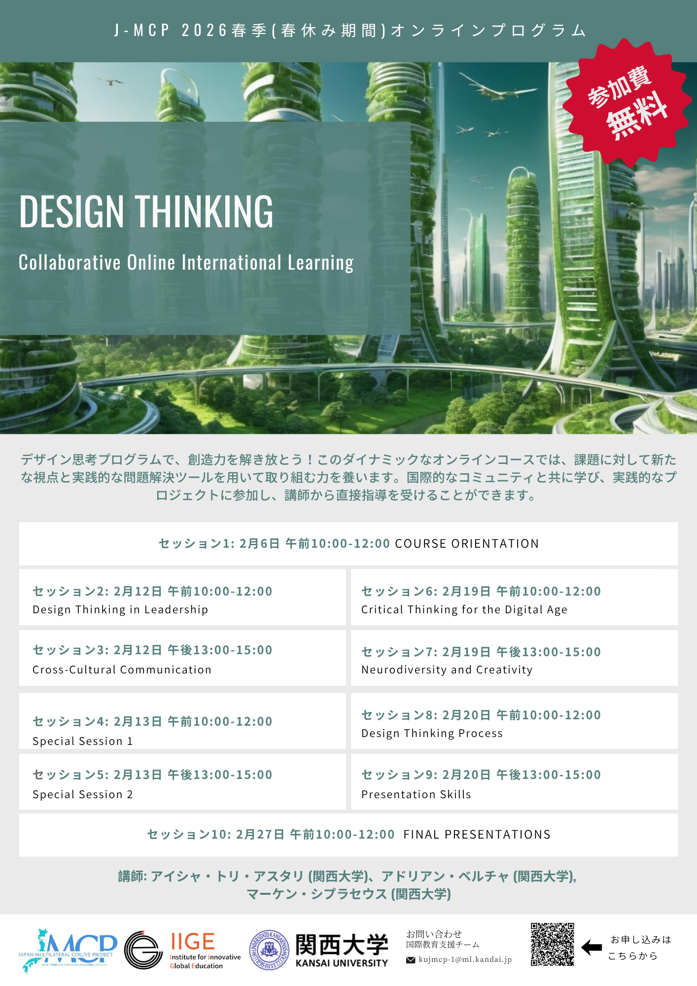 件名に【2026年春季(春休み期間)A/J-MCPプログラム】と明記の上、以下までご連絡ください。
