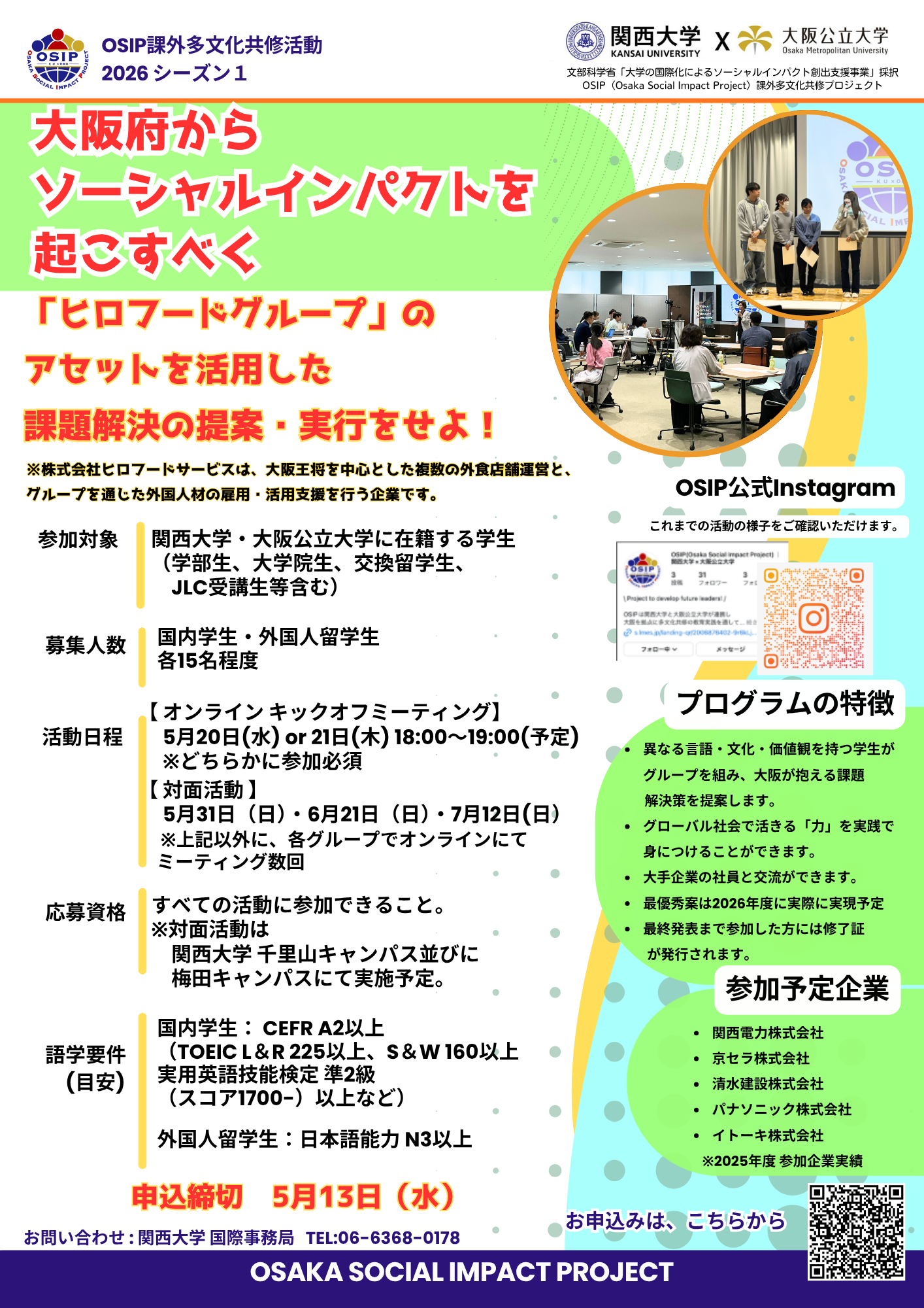 OSIP(Osaka Social Impact Project)とは、関西大学と大阪公立大学が連携して、