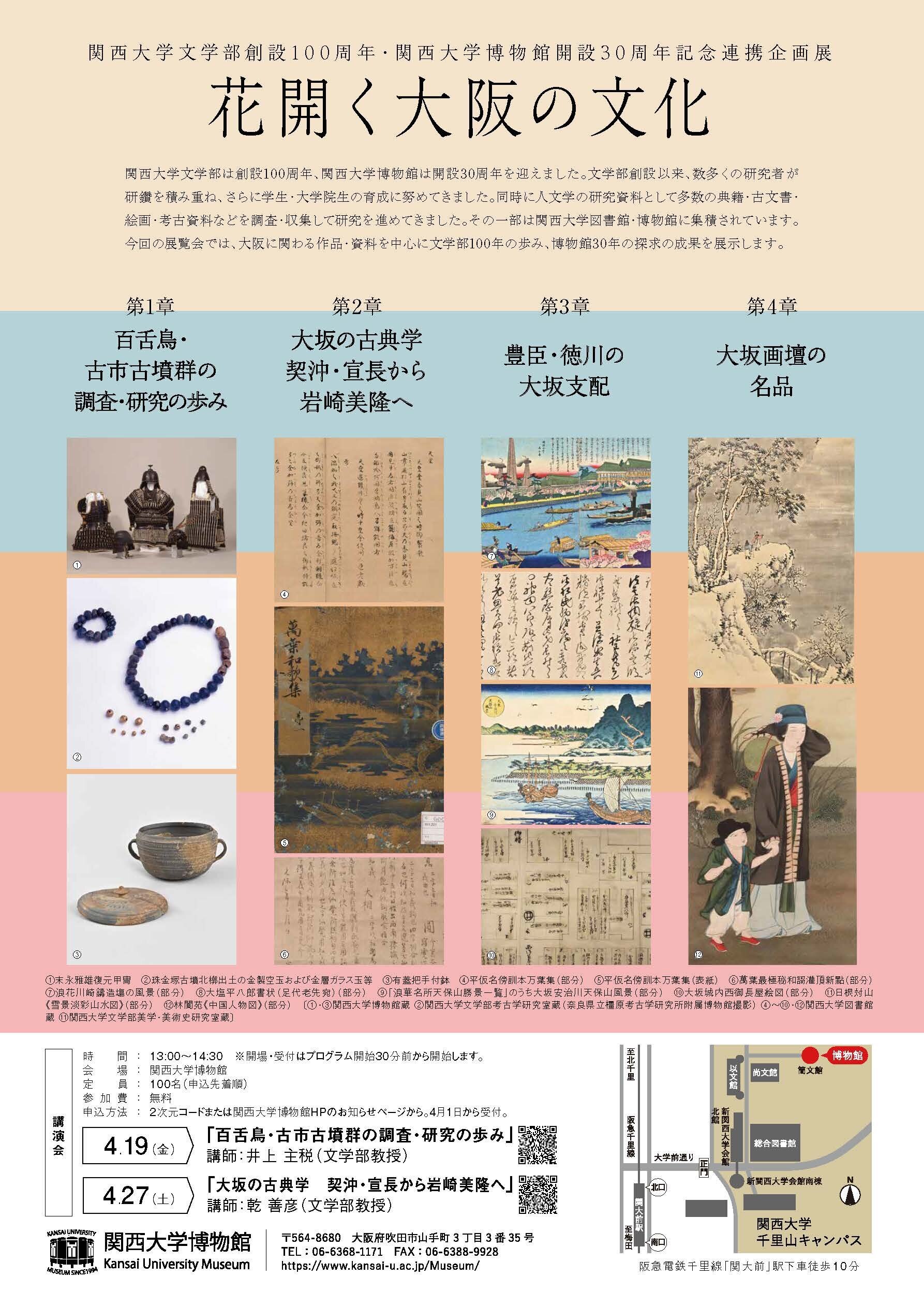 関西大学文学部創設100周年・関西大学博物館開設30周年記念連携企画展「花開く大阪の文化」(4/7~5/31)