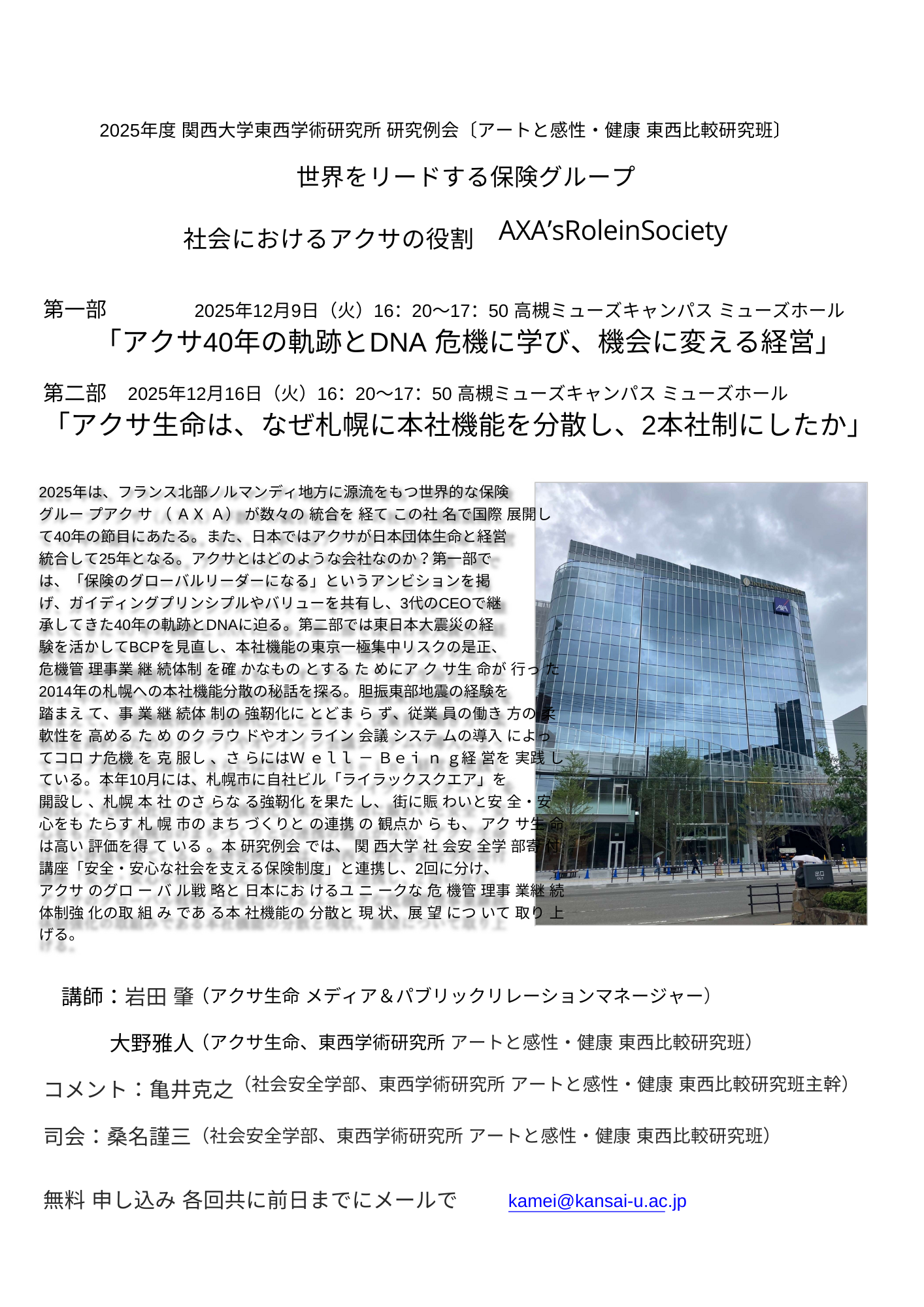 テーマ:「アクサ40年の軌跡とDNA 危機に学び、機会に変える経営」