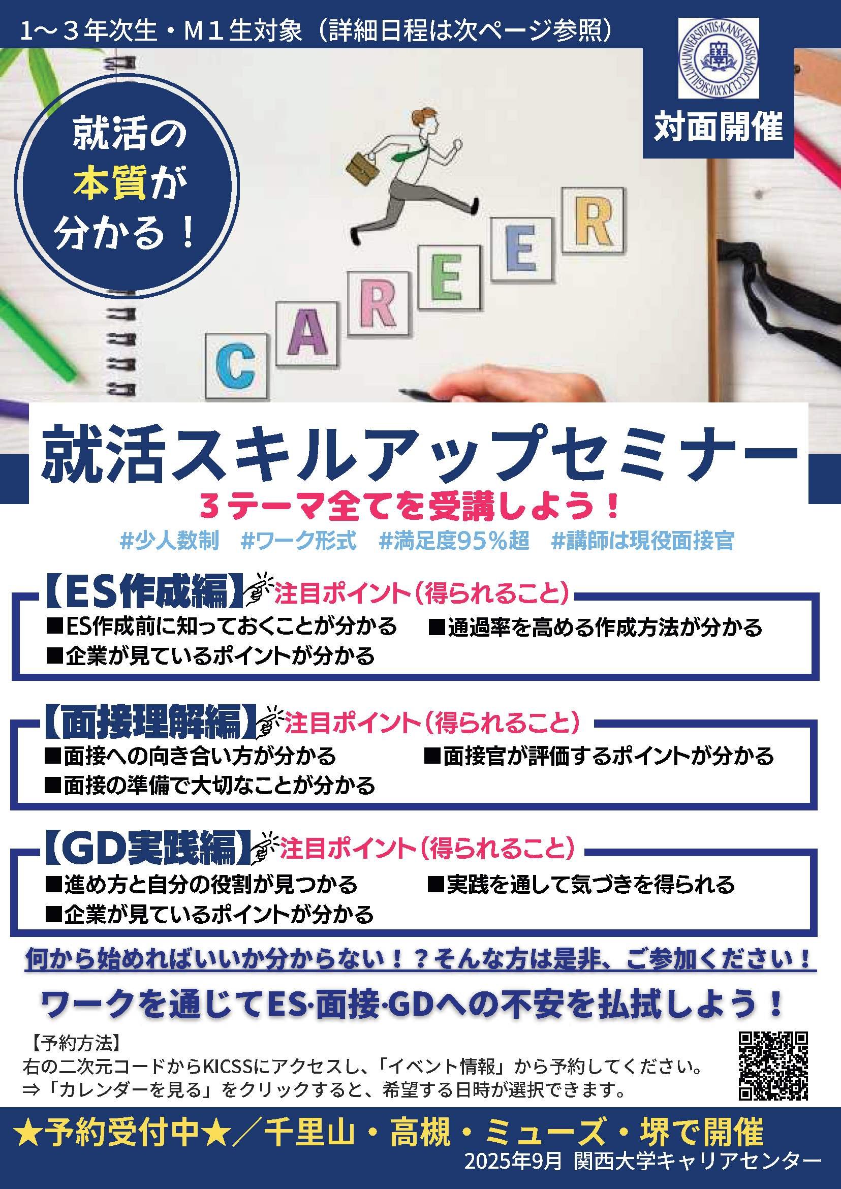 【3年次生・M1生の民間企業就職希望者参加必須!】「第2回就職ガイダンス」開催のお知らせ