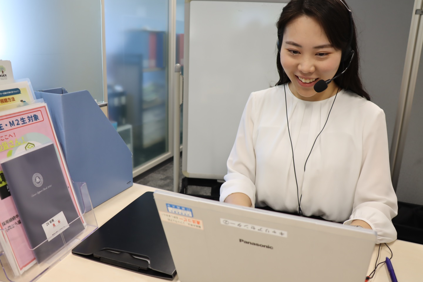 キャリアセンターでは、スタッフと1対1で就職や進路等、将来に関する相談ができます。相談内容は就職活動時の自己分析、エントリーシート作成、面接対策に限らず、「これからの学生生活をどのように過ごそうか悩んでいる」「将来に向けて準備をしたいが何から始めたらいいかわからない」「自分には将来どんな選択肢があるのだろう」等、どんな些細なことでも構いません。就職だけでなく大学院進学等も含め、何でも気軽に相談してください。