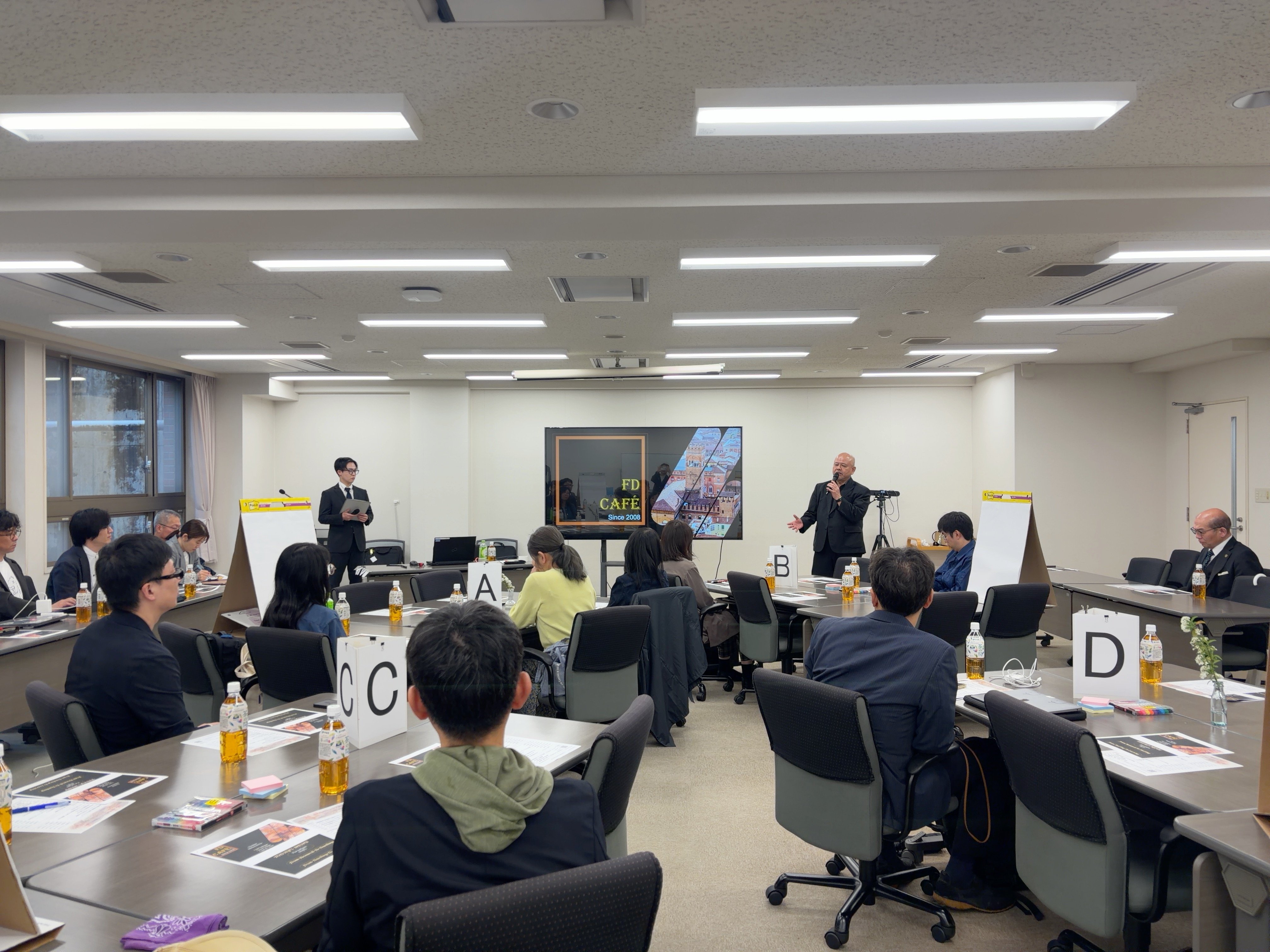 当日は、"From Teaching to Learning"をテーマに、学部の枠を超えて参加教員全員が教育改善についてディスカッションを行いました。各種ワークを通じて、学生と教員の間に生じ得る認識の差異を確認するとともに、近年急速に進展するAI技術の台頭に伴う学生心理を踏まえた指導上の留意点や、授業における工夫のあり方についても意見が交わされました。学習者本位の教育とは何かをあらためて考える、非常に有意義な機会となりました。