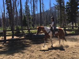 キャンプコースでは選択したアクティビティもかなり完成に近づいてきました。演劇の活動では実際にコスチュームを着て、さらに観客を意識しての練習です。本物の劇団のように声の大きさ・ジェスチャー、セリフがない時の動きまで指導がありました。乗馬の活動ではいよいよ1人で馬を操ります。しかし、初めての乗馬にもかかわらず、とても落ち着いていて、まるで何度も乗馬をしている人のようでした。残り2日ありますので、それぞれの活動をもっと上達させてほしいです。