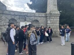 23日(木)の午後には、アイルランドでも特に美しいといわれるパワーズコートを訪れました。まずは館内にあるカフェで、アフタヌーンティーを楽しみました。焼きたての温かいスコーンを前に、「どうやって食べたらいいの?」と戸惑う生徒の姿も見られました。その後の自由時間には、広大な庭園を散策したり、ギフトショップでお土産を選んだり、アイルランドならではの豊かな時間を過ごすことができました。
