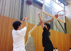 バスケットボール部は、ほぼ毎日練習があります。日々の活動を通じて、バスケットボールの技術向上はもちろん、部員同士の絆を深め、集団生活など社会に出ても恥ずかしくない人材の育成に努めています。