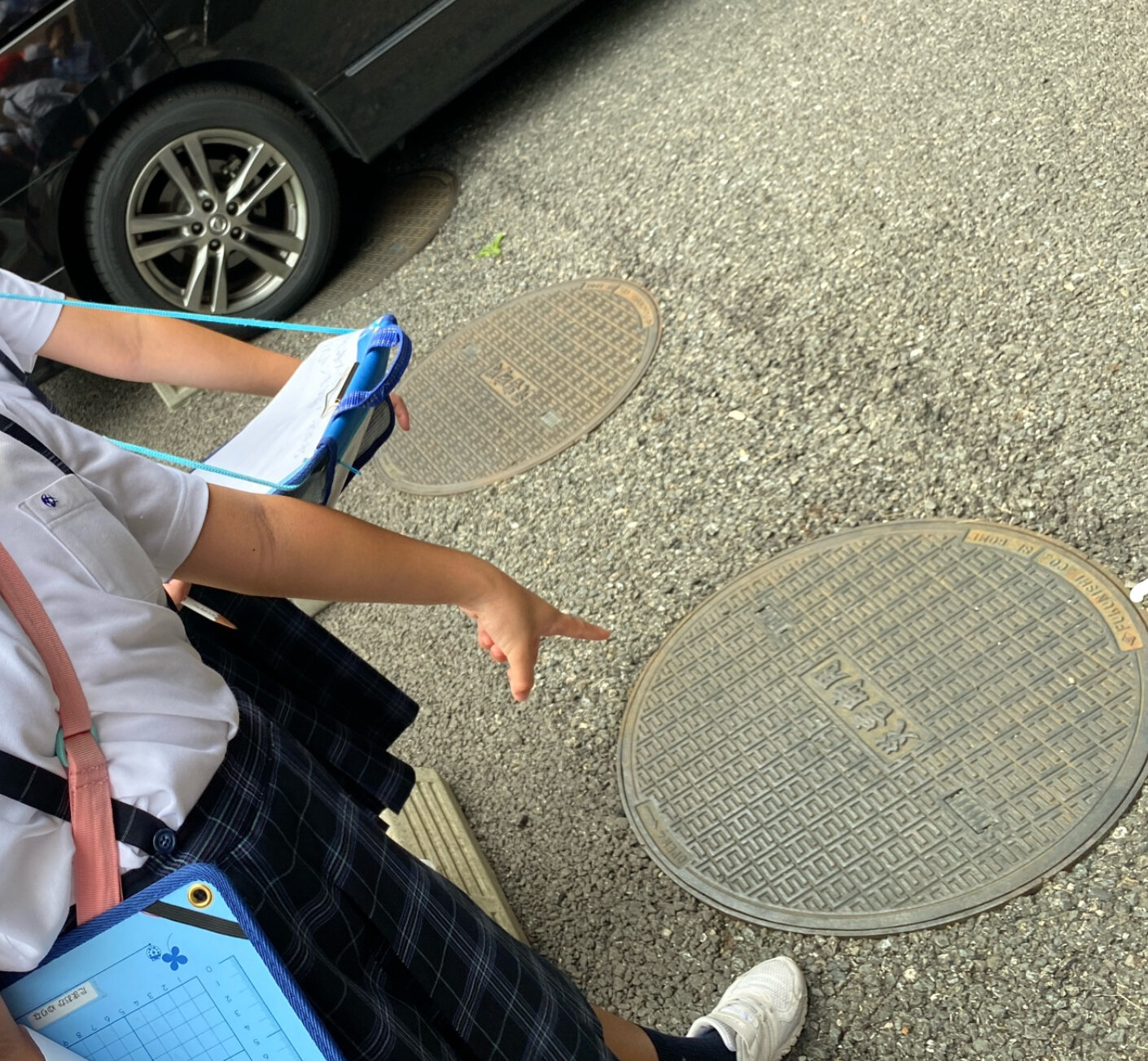 また、私たちの学校には備蓄倉庫という倉庫があります。そこには、災害時に怪我をした人が4〜5人くらい入るテントや、ダンボールベット、大きな鍋や非常食、トイレまで設置しています。一階にあるマンホールにそのトイレを設置することもできます。そのマンホールはすべて合わせて大体5こぐらいあります。