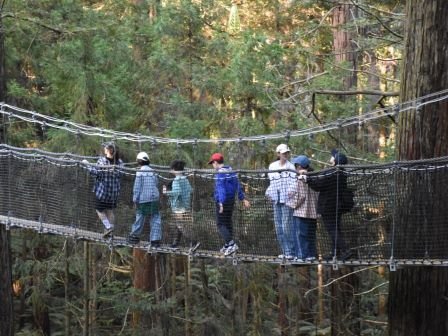 午前は、木と木の間の吊り橋を歩くツリーウォークと林間を歩くチームと分かれて活動です。