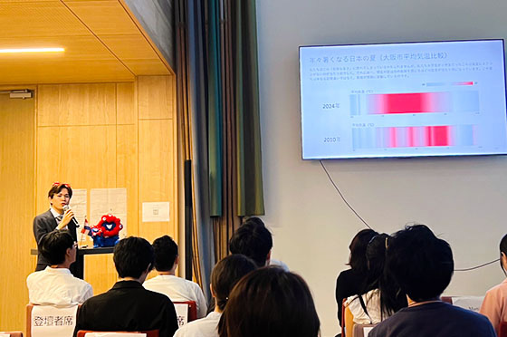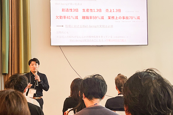 関西大学からは、西田悠人さん(商学部2年生)、井下敬翔さん(商学研究科 D1年次生)の2名が登壇。自身の事業概要や研究内容についてプレゼンテーションを行い、他大学の学生や、社会で活躍する起業家達と意見交換を行いました。