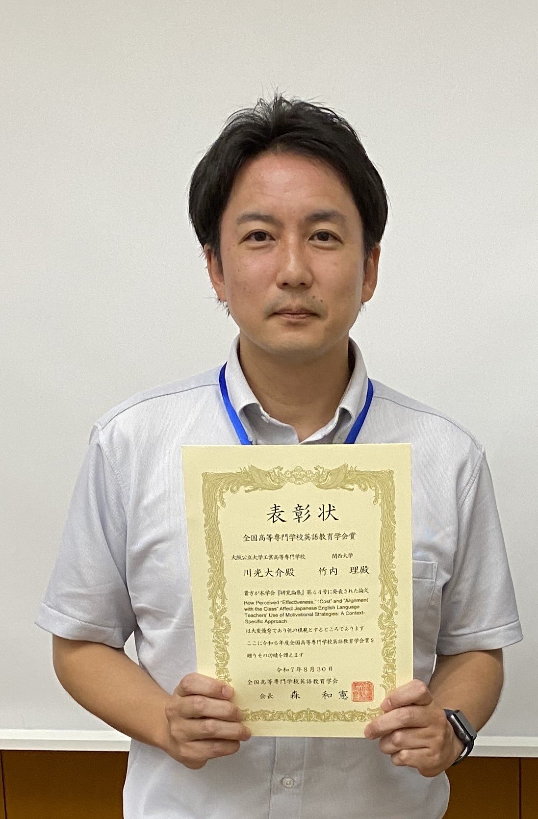 本研究科博士課程後期課程学生の川光大介さん執筆の論文が令和6年度全国高等専門学校英語教育学会 (COCET) の学会賞を受賞しました。
