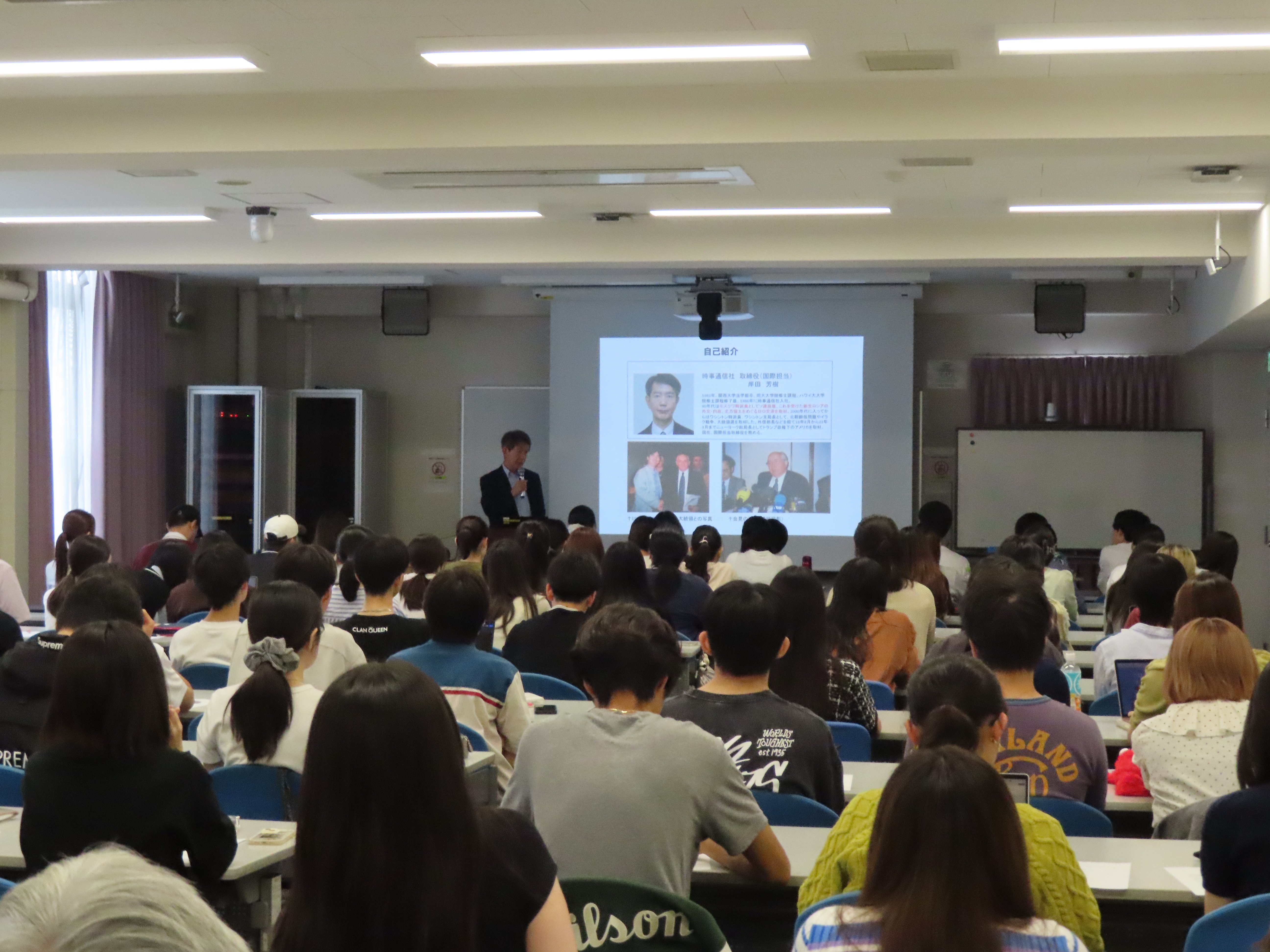 2025年10月10日(金)、岸田芳樹客員教授(時事通信社 国際担当取締役)によるご講演「トランプ2.0の世界 不確実性高まる中、日本の対応は?」が、関西大学千里山キャンパスにて開催されました。