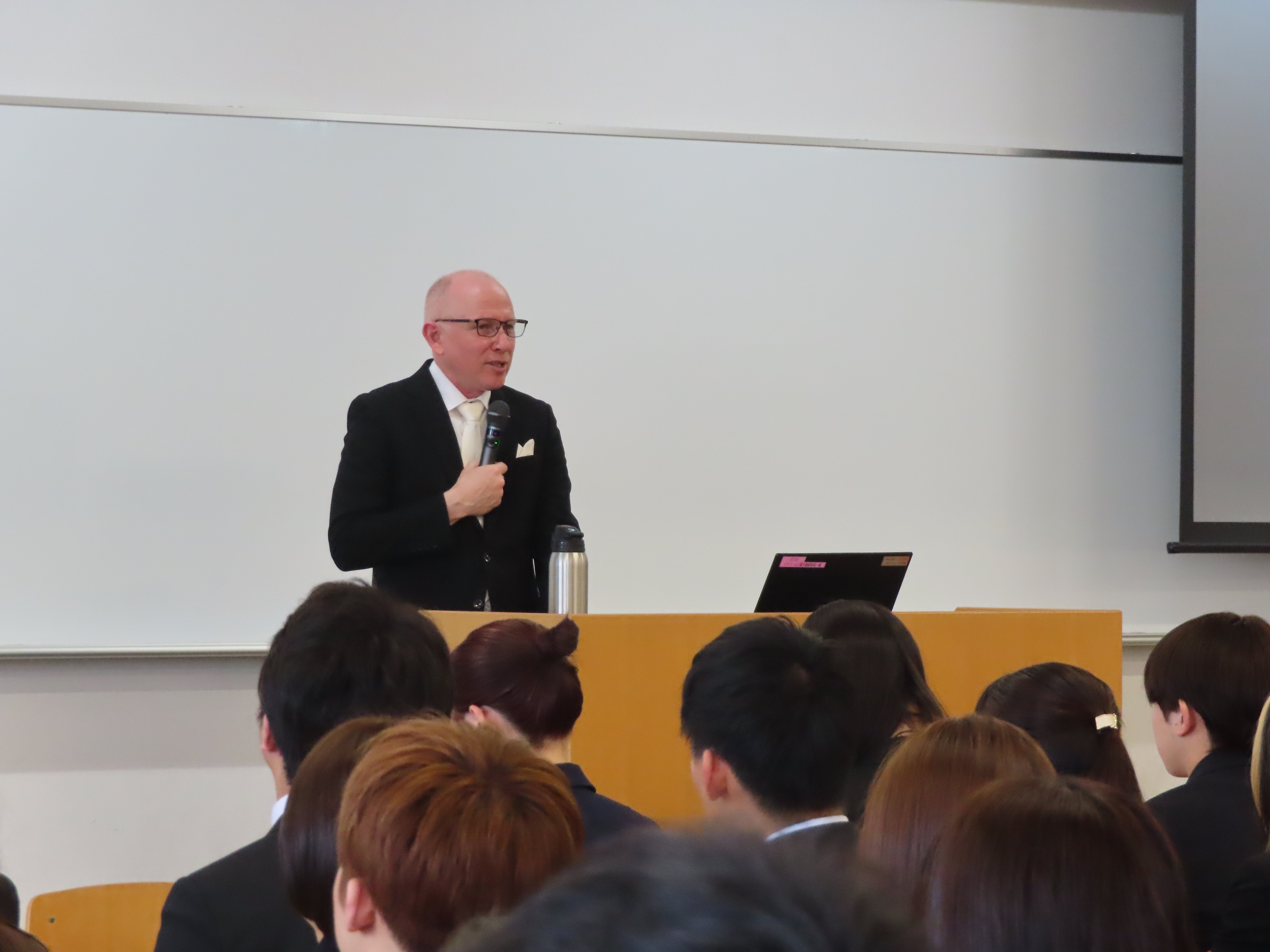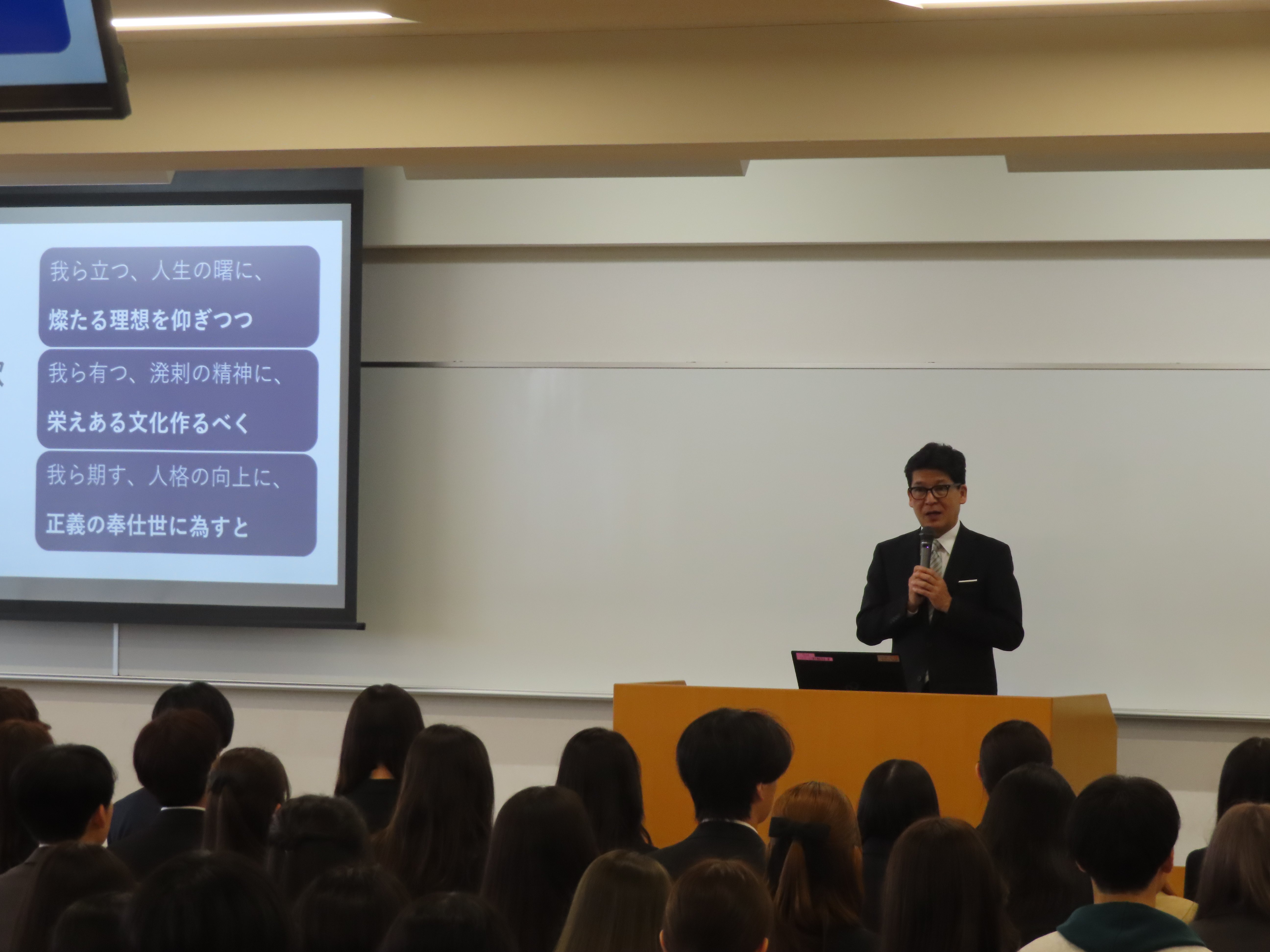 桜の花が咲く下、4月1日、新入生202名、3年次編入生2名を迎え入れ、外国語学部の入学式を挙行しました。