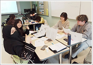 私は留学プログラムの一環であるボランティア活動で日本語や日本の文化を教える教室を週に1回開いています。毎週授業の内容を考え、スライドを作ることは大変ですが、日本に興味を持つ留学生や現地の学生が多く参加してくれるため大きなやりがいを感じます。授業回数を重ねるごとに学生数が増え、自分のコミュニティが広がっていく良い機会となっています。日本について教える過程で他国の文化についても学ぶことができ、異文化交流の場にもなっています。また、放課後にはズンバやバドミントンなどのスポーツを楽しむことができ、この他にも現地の人とボードゲームや談話する機会などもあります。授業外でも交流を深めることができます。