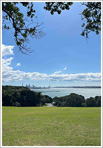 有名なミッションベイビーチのすぐそばにあるBastion Pointという丘が私のお気に入りの場所です。ビーチから10分ほど歩けばもう到着するほどの位置にあり、一面に美しい緑が広がっています。海が見渡せることはもちろん、スカイタワーなどがある街の中心地も一望することができ、ミッションベイビーチの賑やかさからは少し遠のき落ち着いた時間を過ごすことができます。到着して1週間目に友達とビーチを訪れた際に、どこから帰りのバスに乗るのか彷徨っていた所、たまたま看板を見つけてこの場所に到着しました。留学生活が始まったばかりだったので一際感動したのだと思いますが、何度行っても心が落ち着くようなそんな場所です。また、シティの中心地にあるYoghurt storyというヨーグルト屋さんは自分で好きな味のヨーグルトを機械から絞ってトッピングも好きなようにできるお店で、授業終わりなどによく友達と通っていました。