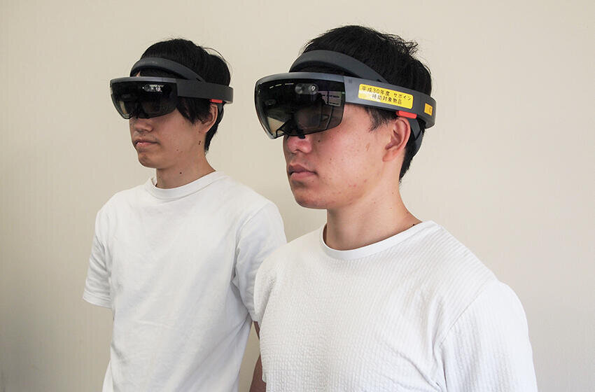学生さんが活躍しているなんて、かっこいい! このゴーグル型の装置がMRデバイスですか。レンズ部分がディスプレイになっているわけですね。