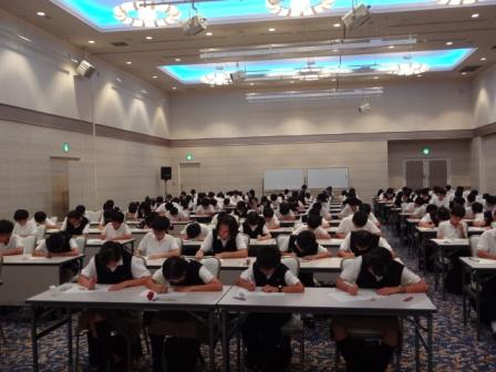 7月21日(日)から23日(火)まで西脇市の西脇ロイヤルホテルで中学1年生学習合宿を行いました。集中できる環境のもと、積極的に学習に取り組む姿勢を身につけさせ、1学期の総復習をすることが目的です。朝に西脇市内の古い町並みを散策する以外はひたすら学習です。1日8時間におよぶ学習を行い、最終日には、まとめテストを実施しました。生徒は、授業→自主学習→到達度チェックという学習のサイクルをつくり、目標を達成するために一生懸命取り組んでいました。