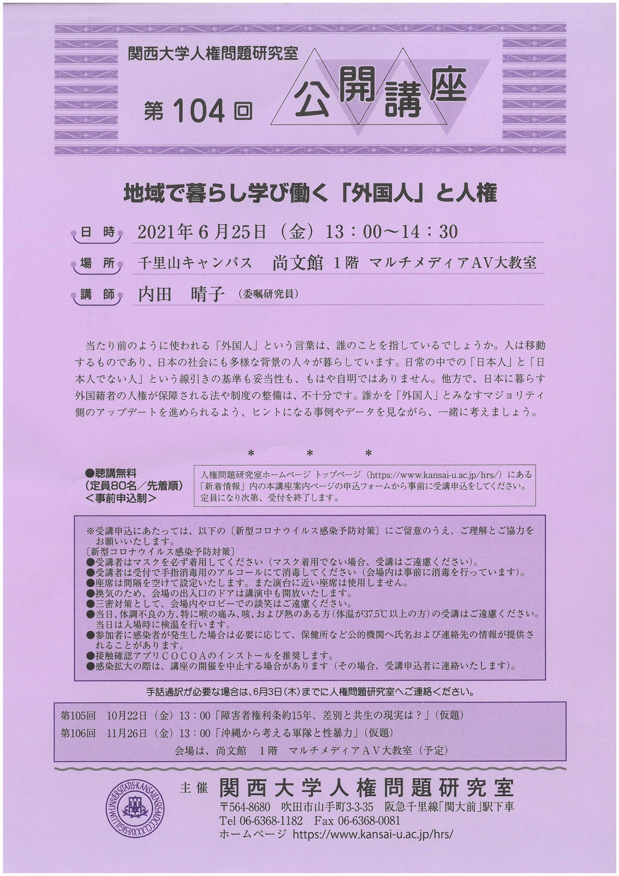 関西大学人権問題研究室 第104回公開講座