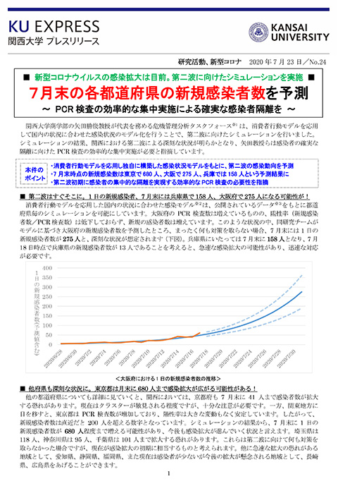 プレスリリース「商学部・矢田教授らが7月末の各都道府県の新型コロナ新規感染者数を予測」を配信