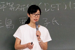 三島氏は、早くからDETに取り組んできたイギリスでの調査経験などをもとに、DETのプログラムの概要ならびに、その役割や目標、講師養成の重要性など今後の課題について述べました。