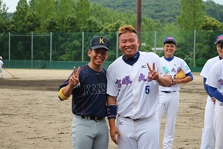 本学協定校である台湾・国立高雄大学から野球部29人(引率者含む)が来日し、高槻キャンパスで6月25日、本学体育会野球部と親善試合を行いました。