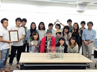 6月23日のファーストワークショップでは、株式会社松井泉・松井利行社長から堺市とあなごの歴史や、あなごに人生をかける社長の熱意などを披露いただきました。続いて7月15日には、本学商学部ゼミ生によるネーミングアイデアのプレゼンテーション大会を実施。今後は、今回提案された約100個ものユニークなアイデアの中からネーミングを決定し、この秋に商品化、そして11月5日のアナゴの日に発表会を実施する予定です。