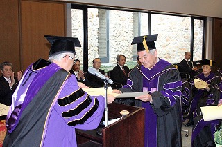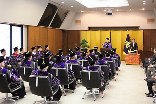 芝井学長は「ここにいる先生方は学術研究において顕著な実績・経歴をお持ちの方ばかりで、大学が誇るべき存在。長年の功績を称え、今日こうして名誉教授の称号をお渡しできることを、私自身嬉しく思う。いつまでも関西大学も見守り続けてほしい、またたくさんのことを教えてほしい」と言葉を贈りました。