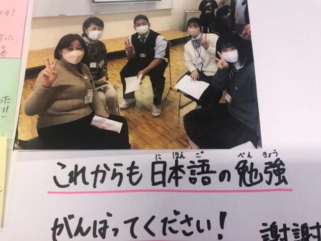 あっという間に時間は過ぎ、最後にみんなで集合写真を撮影しました。どのグループもとても盛り上がり、他国の生活や食べ物などを知る機会になり、国際交流を深められる有意義な時間となりました。今後もこのような国際交流を続けていきたいと考えています。