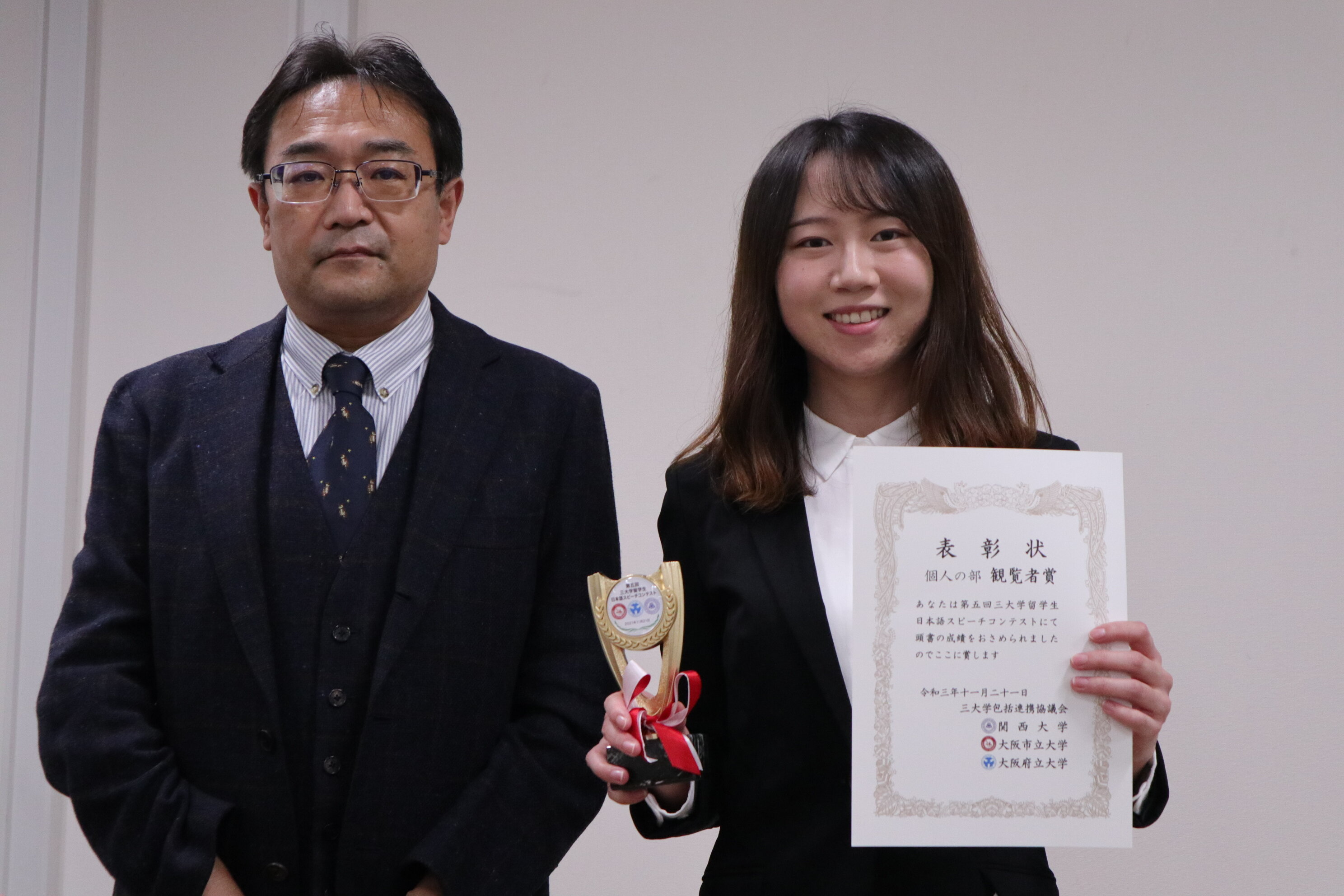 This year, our Bekka student from China, Ms. Chang Xiaoyun participated in the contest and won both the gold award and the audience award. As a result, Kansai University was given the group award!