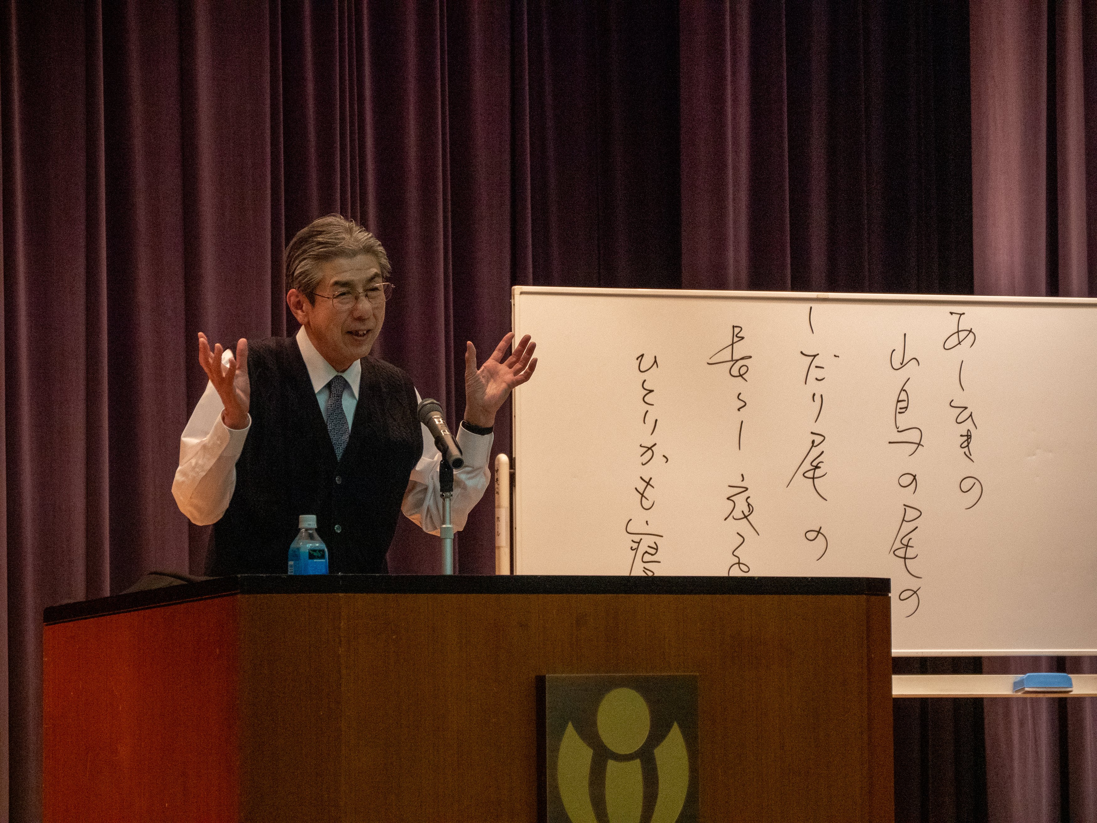 和歌を一節ずつていねいに読み解く内容で、わかりやすい比喩や例示が多く、大変興味深い講義でした。参加者が先生に問いかけるような場面も多く、にぎやかな雰囲気でした。