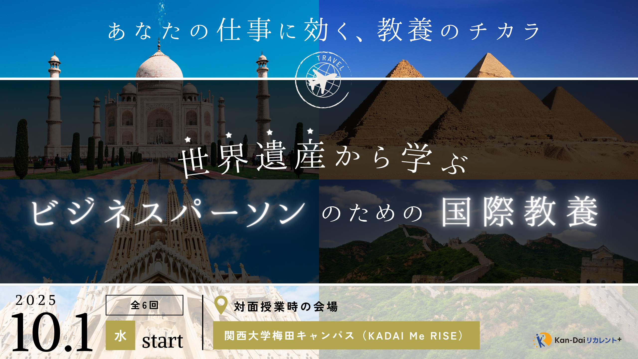 このプログラムでは、世界遺産を切り口に、歴史・文化・観光・都市開発・メディアといったテーマを横断的に学びます。国際的な感覚、伝える力、ストーリーブランディングなど、明日から使える"教養"を実践的にインプット。