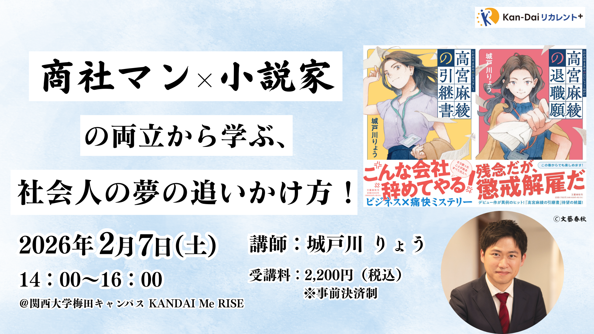 商社で働きながら、小説家という夢を叶えた異色のキャリアを持つ城戸川りょうさんがご登壇!!