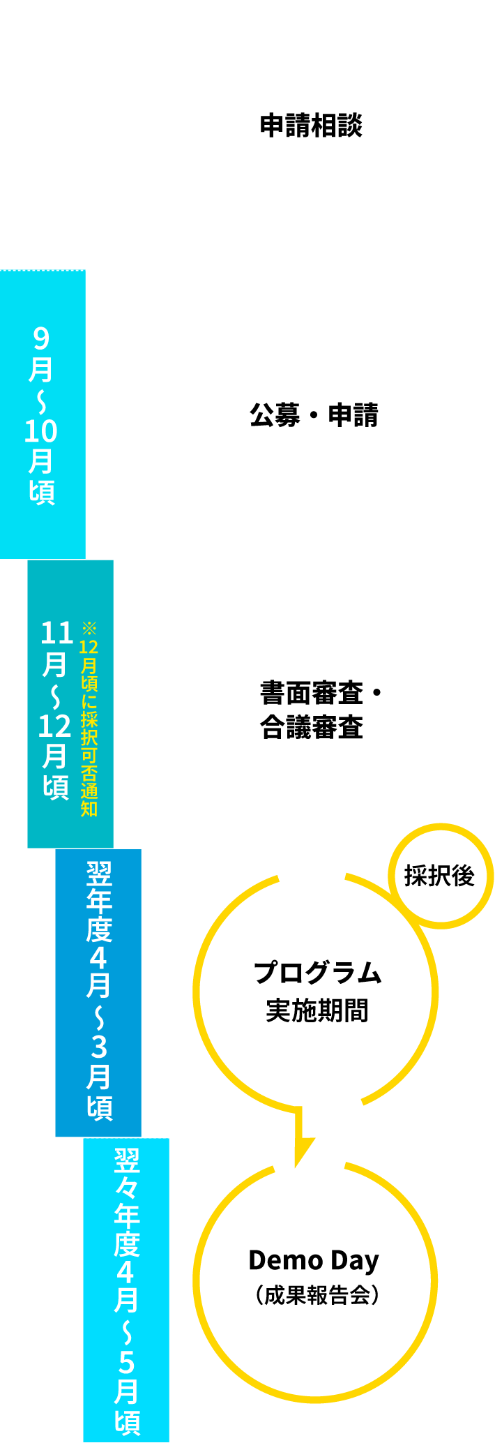 ③ | 本プログラムの趣旨・目的に沿った研究開発や事業化活動を対象とし、起業前であること。 | |