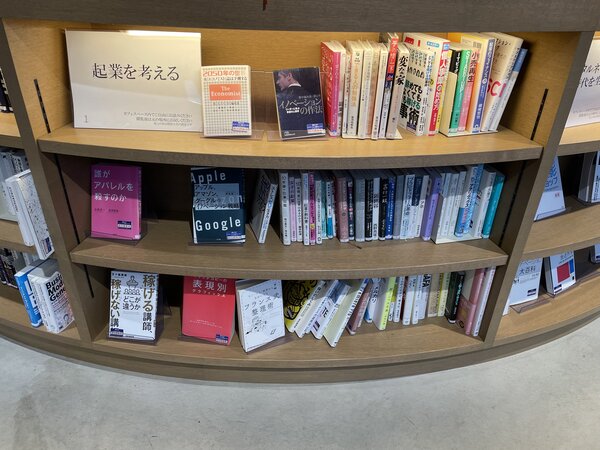 イノベーション創生センター1F カフェスペースでは、過去に当センター主催イベントでご講演いただいた方のオススメ本など、様々なカテゴリの書籍を2,000冊以上配架しております。カフェスペース内で自由に閲覧(購入・持出不可)いただけますので、当センターにお立ち寄りの際は、是非お手に取ってご覧ください!