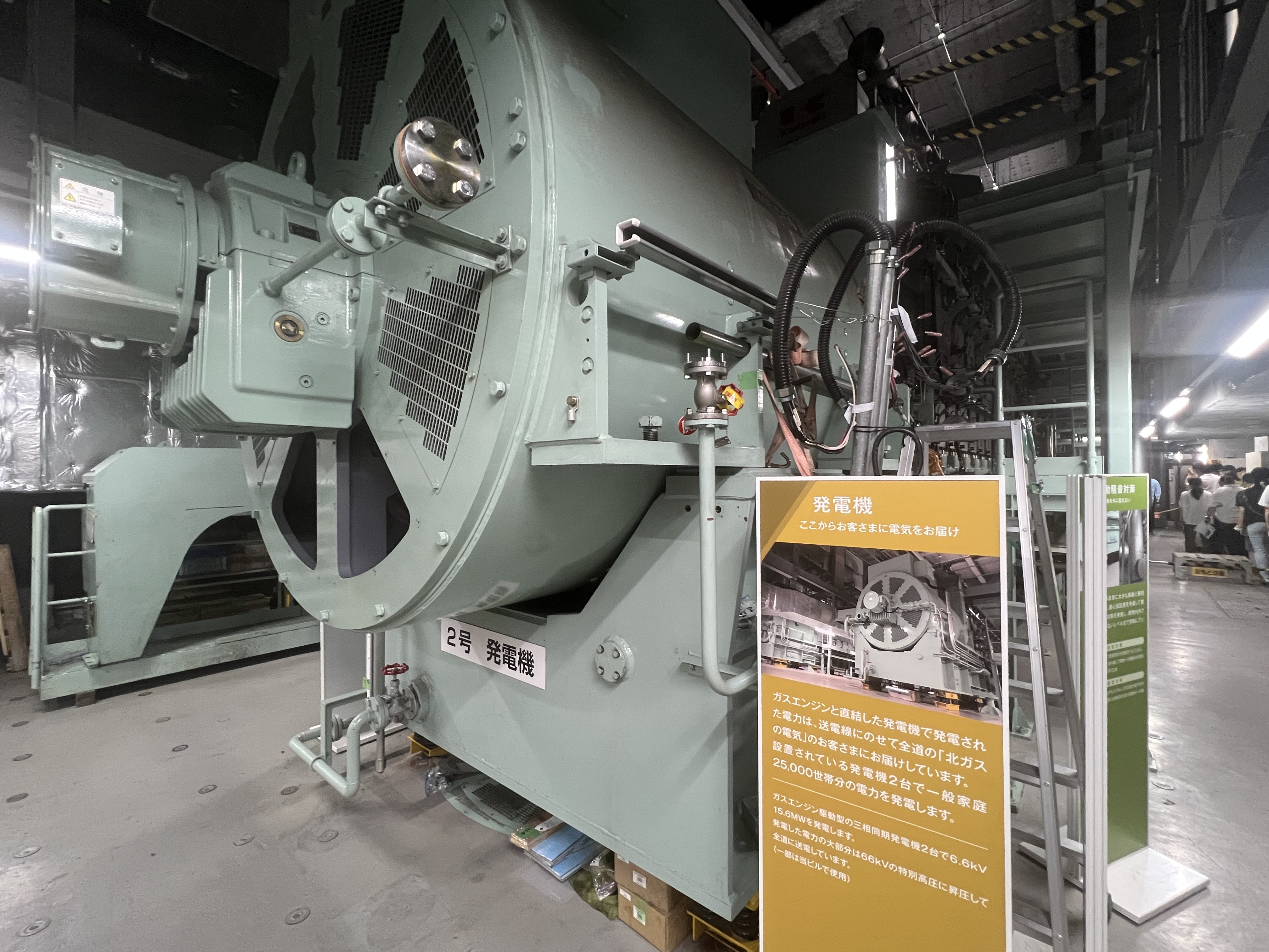 新さっぽろエネルギーセンター/施設見学① 新さっぽろエネルギーセンター/施設見学② 新さっぽろエネルギーセンター/施設見学③午後には北海道ガス本社に移動し、同社が掲げる脱炭素に向けたロードマップや取り組みに関する講義を受講しました。その後、本社発電所の大規模発電機や中央エネルギーセンターの見学を行い、寒冷地大規模都市のエネルギー供給がどのように維持・運営されているのかを具体的に理解することができました。学生たちは、様々なエネルギーインフラの現場を実際に目にすることで、理論的な学びを現実社会の仕組みと結びつける貴重な体験を得ることとなりました。