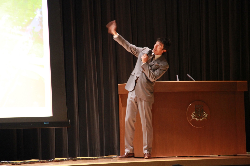 10月7日(月)、北京オリンピック銅メダリストの朝原宣治さんをお招きし、中等部・高等部合同で「教育講演会」を開催いたしました。