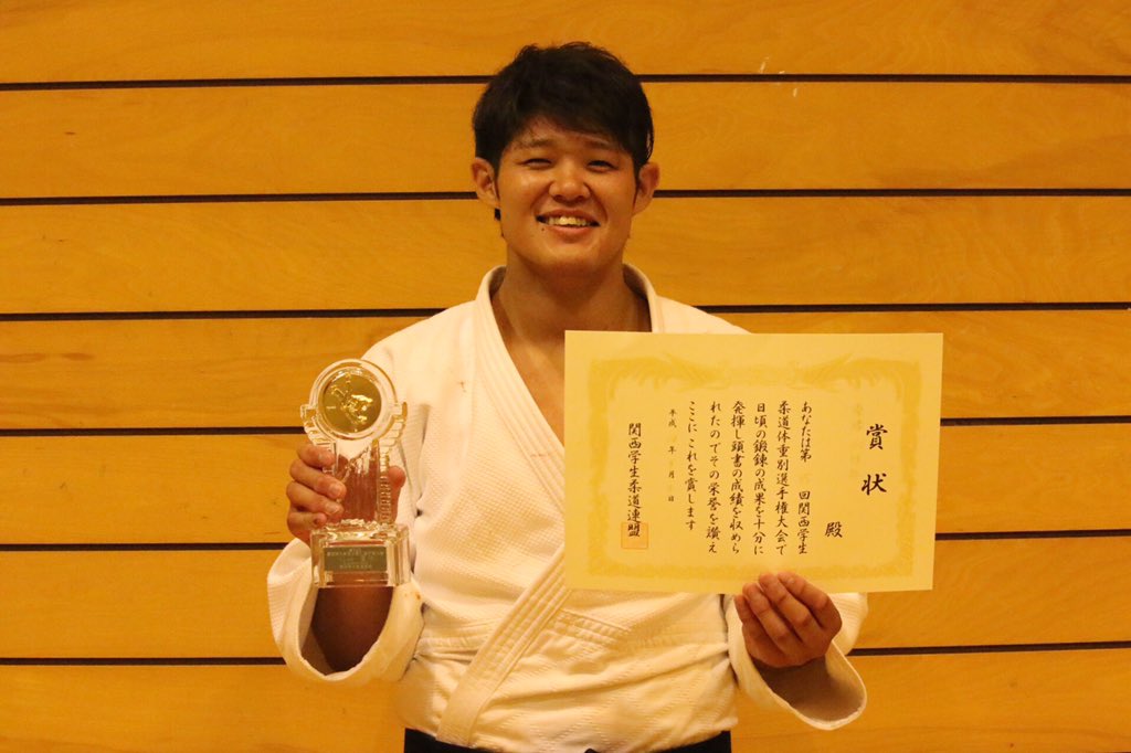 9月4日、奈良県・天理大学杣之内第一体育館で開催された関西学生柔道体重別選手権大会(男子35回/女子28回)の男子100キロ級で荒木佳祐さん(人2)が優勝しました。