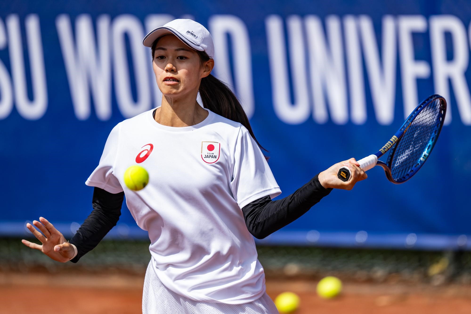 「FISUワールドユニバーシティゲームズ2025」のテニス競技はドイツ・エッセンで23日、女子ダブルス準決勝を行い、本学テニス部の山口花音(経済学部4年)/カジュール・オヴィアンジュ(オクラホマ州立大学卒)は、第4シードの李/姚(中国)を6-3、2-6、10-8のフルセットの末に下して決勝進出を決めました。