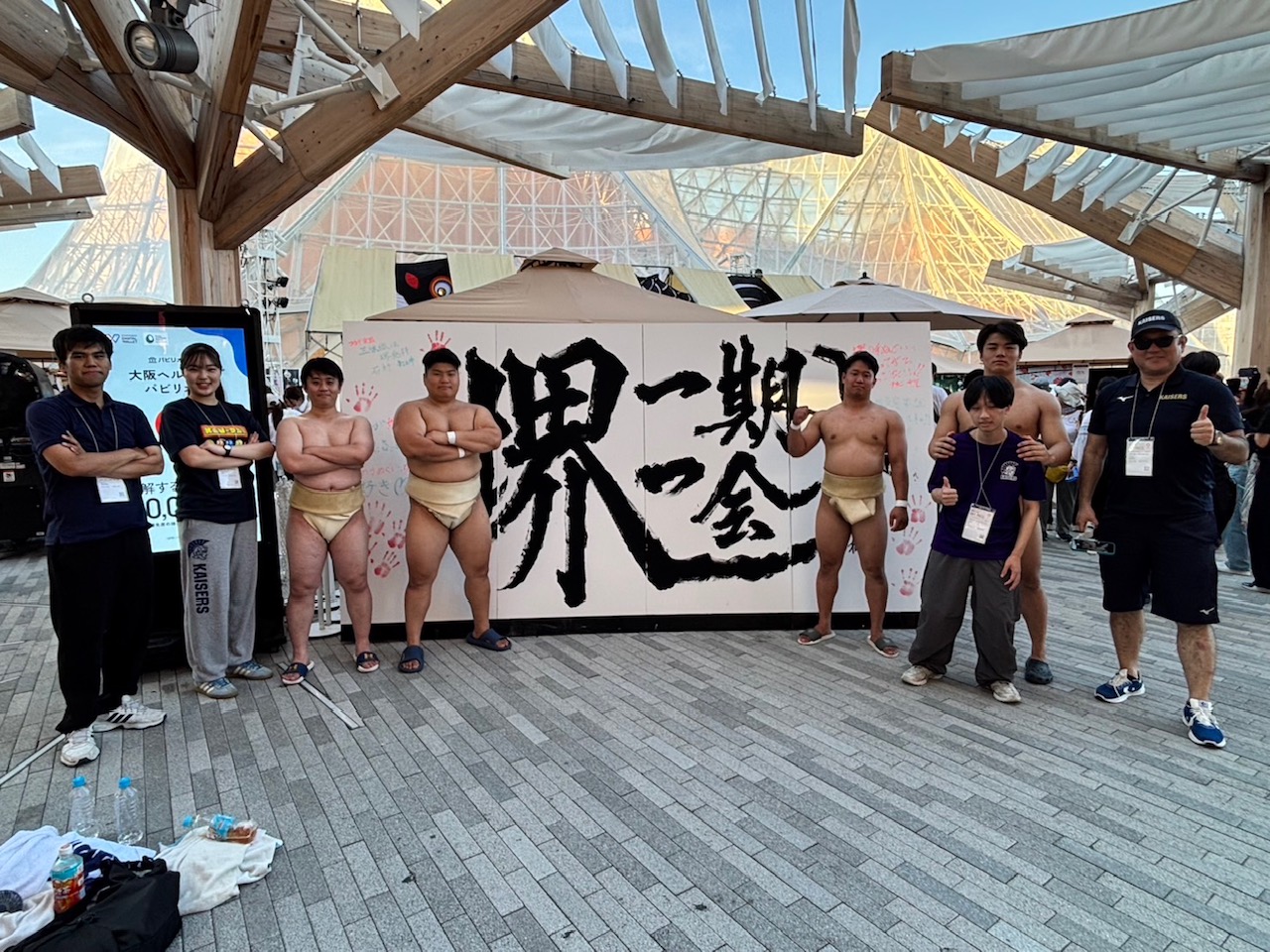 7月28日、開催中の大阪・関西万博にて堺市主催イベント「Craftmanship Journey〜万博の楽市楽座 – 堺と出会う一期一会」に関西大学相撲部が出演し、関西大学相撲部パフォーマンス「SUMO SYNC(スモウ・シンク)」 を披露しました。