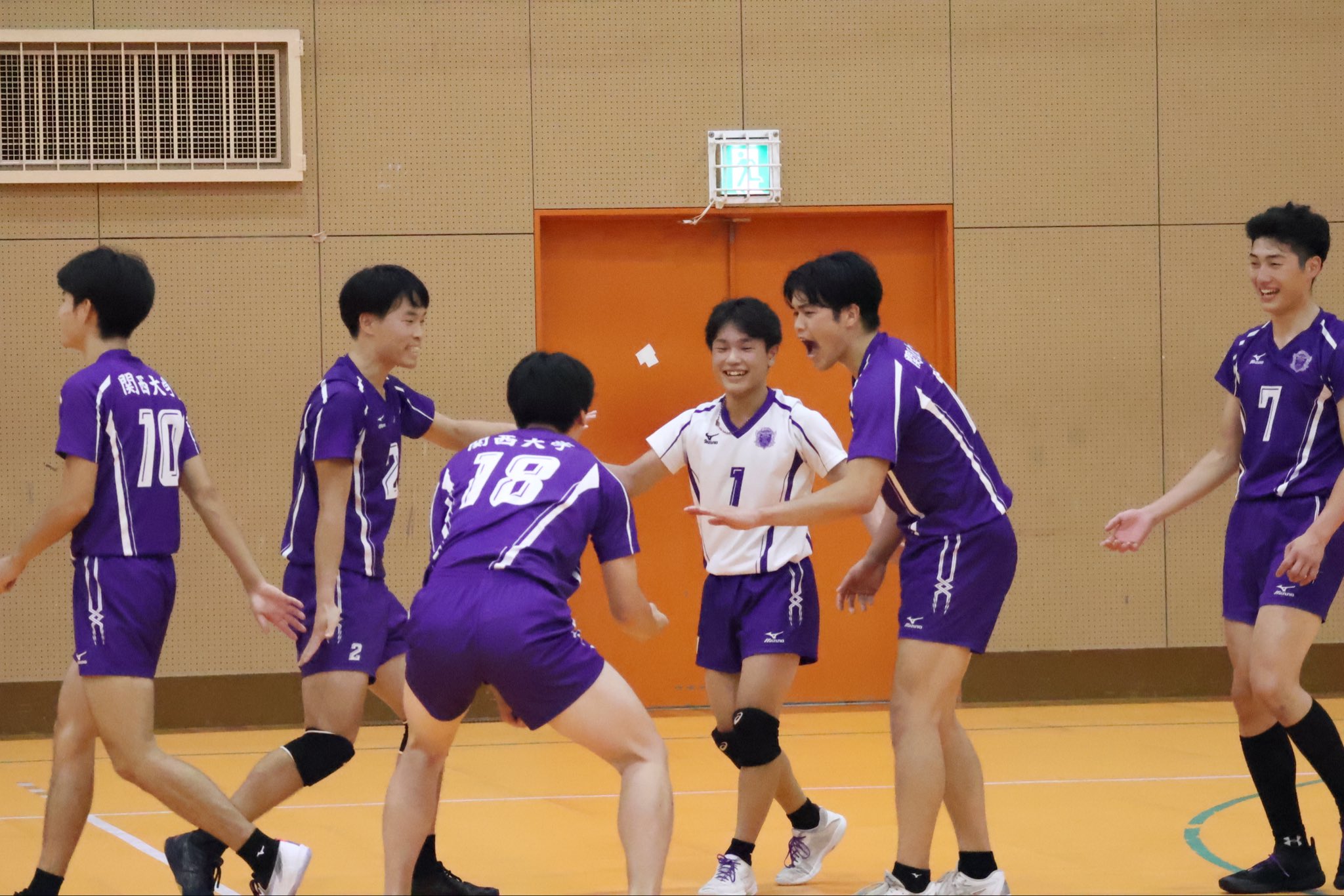 関西大学バレーボール秋季リーグの第5戦が4日、びわこ成蹊スポーツ大学で行われ、2勝2敗の関西大学は同じく2勝2敗の甲南大学と対戦し、セットカウント3-1で下してBブロック3位以上が確定し、明日からの1位から6位を決める上位リーグ進出を決めました。