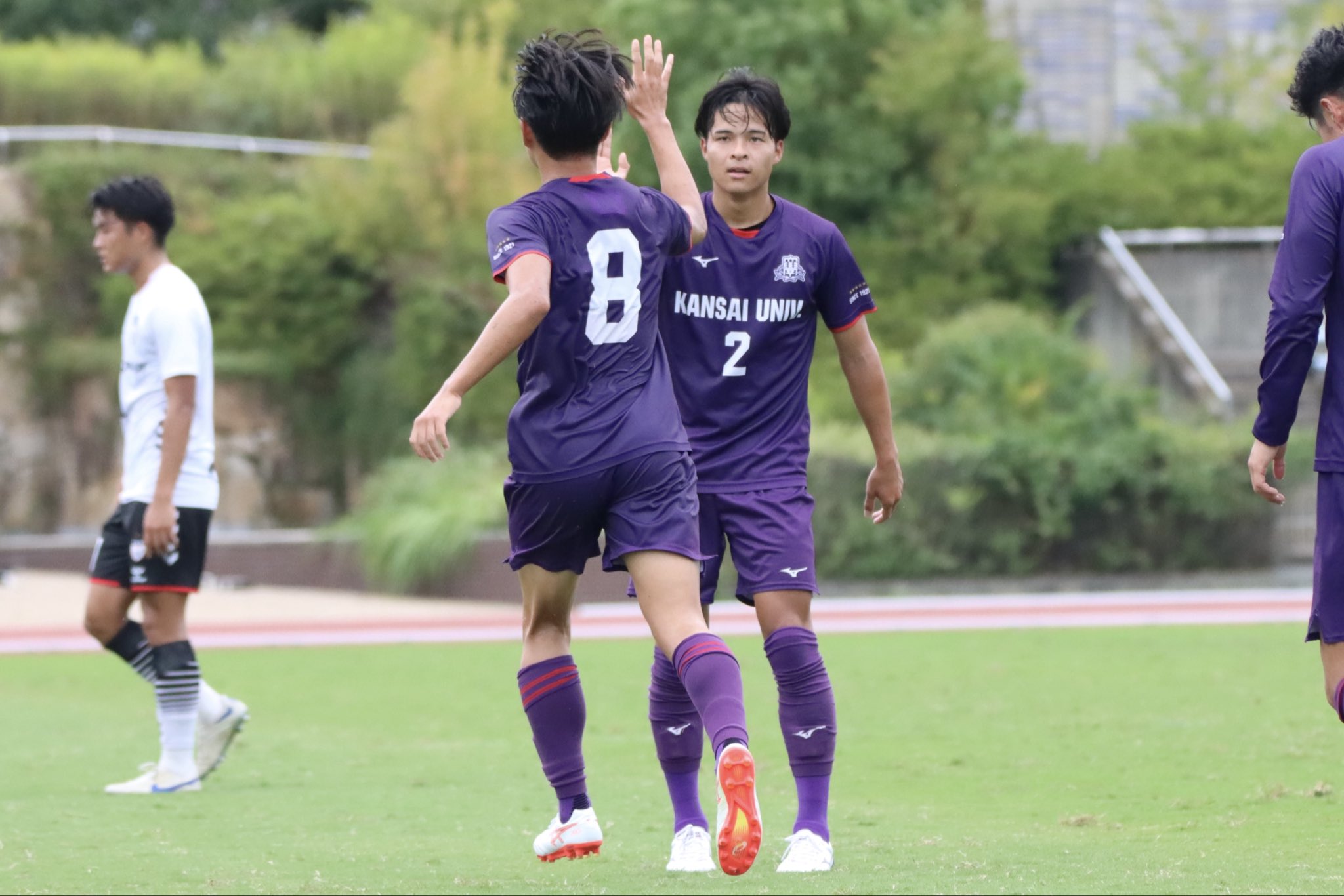 前半にPKで先制を許した関西大学は、アディショナルタイムに右サイドからJ磐田入団内定のDF桑原航太(社会学部3年)が崩して、そのラストパスをMF真田蓮司(法学部3年)が3試合連続となるゴールを決めて追いつきました。